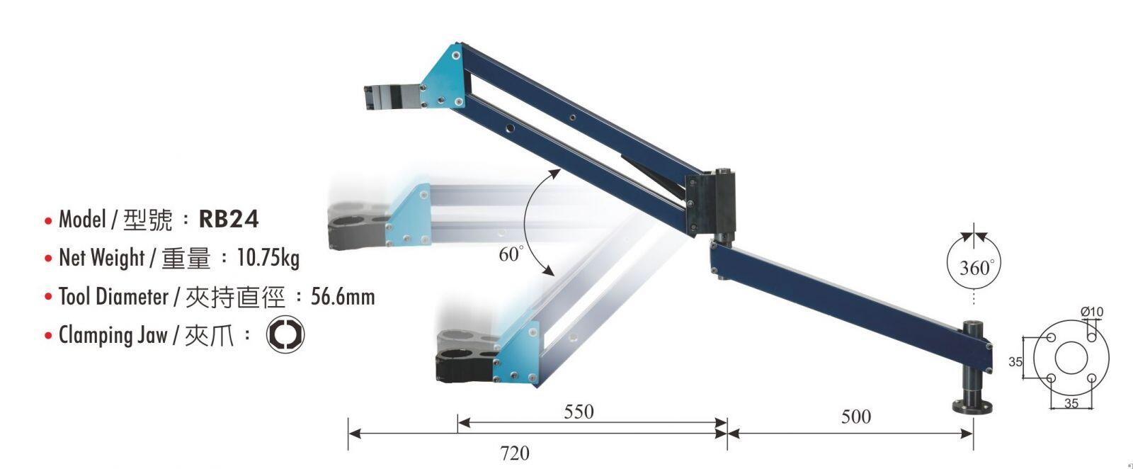 ● Phạm vi hoạt động: 500 ~ 1220 mm