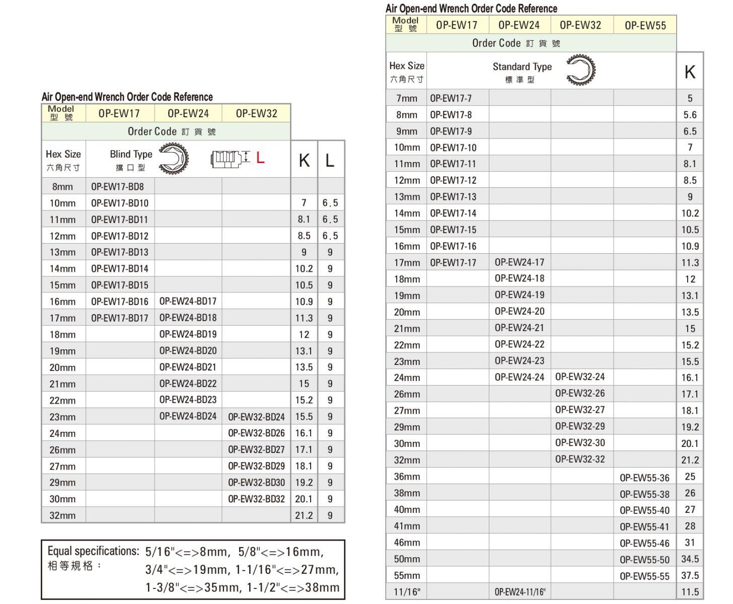 | OP-EW32 | 24, 26, 27, 29, 30, 32 (1-1/16″) | 12 ~ 24 | 115 | 198 | 7 | 461 | 1/4 | 2.09 | 4 | 87 |
