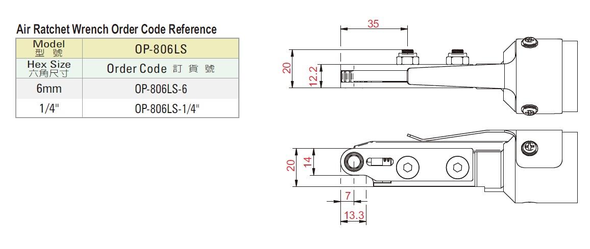 Tên sản phẩm: Dụng cụ vặn ốc khí nén OP-806LS